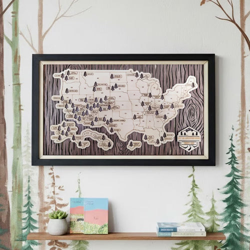 This US wood map isn’t just decor—it’s a celebration of your National Park travels. Whether you’re marking parks visited or dreaming of future trips, it’s the ultimate travel tracking keepsake. Order now and inspire a lifetime of exploration!
